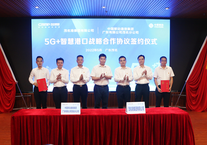 5月11日下午,茂名港集團(tuán)與茂名移動(dòng)簽署“5G+智慧港口”戰(zhàn)略合作協(xié)議,雙方攜手打造“5G+智慧港口”。茂名市政府副秘書長(zhǎng)吳再銘,茂名港集團(tuán)黨委書記、董事長(zhǎng)王志華,黨委副書記、總裁肖炳璋,茂名移動(dòng)黨委書記、總經(jīng)理林治國等一行出席簽約儀式。