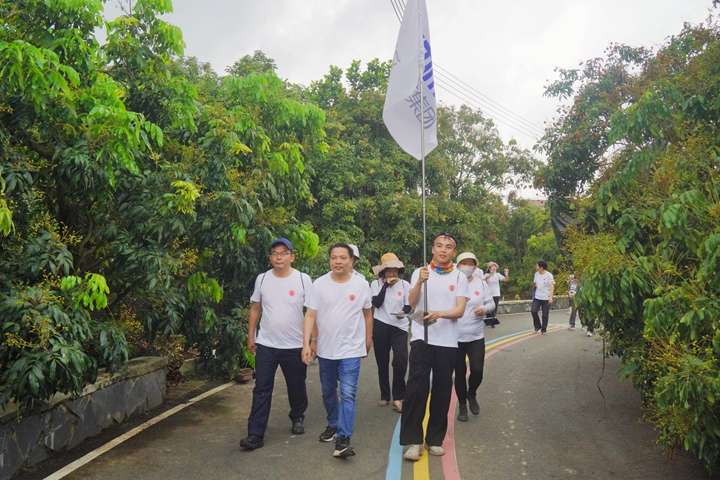 活動當天,集團員工們身著統(tǒng)一服裝,精神飽滿地參與了全程2公里的文化徒步。沿途,大家熱情投入到彩虹跑、古荔打卡等12項特色活動中。在古荔園內,員工們重點參觀了七棵千年古荔樹,并積極參與收集以"五世同堂"等古荔樹為原型的定制文創(chuàng)印章。