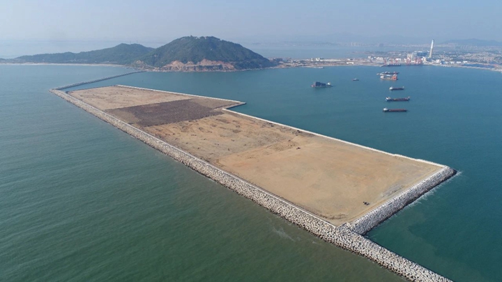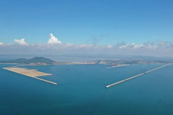 鳥瞰茂名港務中心施工現(xiàn)場