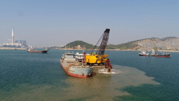 化工碼頭施工船只海上作業(yè)