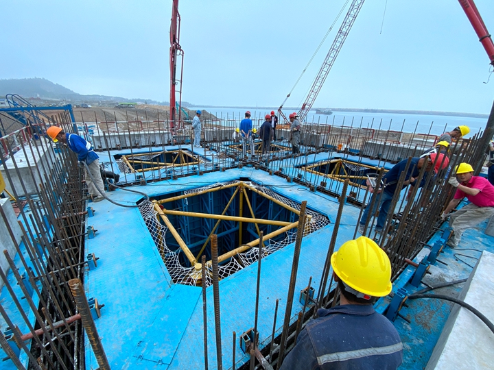 在春暖花開之際,茂名港博賀新港區(qū)東區(qū)化工碼頭工程率先“入水”——3月5日,首件C型沉箱首層順利澆筑完成,標(biāo)志著該項(xiàng)目全面進(jìn)入水域施工階段。