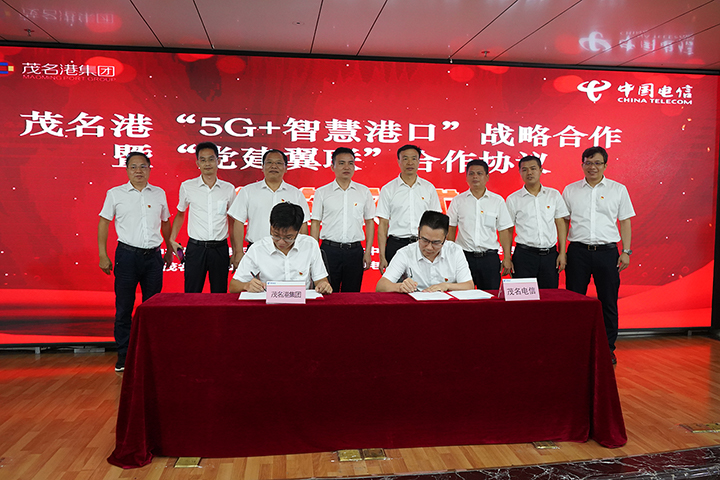 9月7日,茂名港集團(tuán)與茂名電信舉辦“5G+智慧港口”戰(zhàn)略合作簽約暨“黨建翼聯(lián)”黨組織結(jié)對共建合作簽約儀式,雙方將探索共建茂名港智慧港口5G標(biāo)桿項(xiàng)目,全面提升茂名港數(shù)字化運(yùn)營能力。茂名港集團(tuán)黨委書記、董事長王志華,中國電信茂名分公司黨委書記、總經(jīng)理李圣祥,副總經(jīng)理馮光星、胡榮臻等出席儀式,并見證《5G+智慧港口戰(zhàn)略合作協(xié)議》《黨建翼聯(lián)黨組織結(jié)對共建合作協(xié)議》的簽訂。