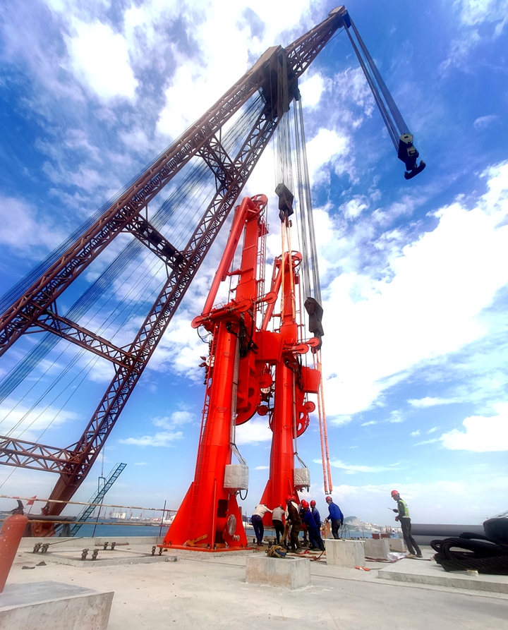 10月17日上午9時(shí),隨著起重工一聲哨響,茂名港博賀新港區(qū)東區(qū)油品碼頭項(xiàng)目首臺(tái)大型設(shè)備輸油臂通過400噸浮吊的精準(zhǔn)吊裝,圓滿完成首臺(tái)設(shè)備吊裝任務(wù)。