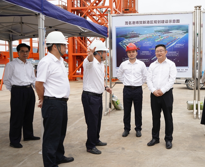 為貫徹落實(shí)“十四五”口岸發(fā)展規(guī)劃,進(jìn)一步推進(jìn)茂名市口岸重點(diǎn)項(xiàng)目建設(shè)。近日,廣東省商務(wù)廳黨組成員、副廳長何軍一行到吉達(dá)港區(qū)、博賀新港區(qū)開展口岸相關(guān)調(diào)研工作,市商務(wù)局局長楊曦,濱海新區(qū)黨工委副書記黃永,集團(tuán)黨委書記、董事長王志華陪同調(diào)研。