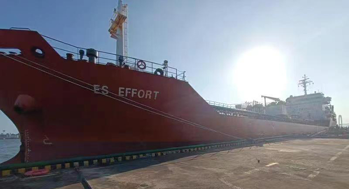5月28日下午18時(shí)10分,裝載有2500噸基礎(chǔ)油的“永海奮進(jìn)”號(hào)外輪在碼頭操作人員的精準(zhǔn)引領(lǐng)下順利靠泊中油王港公司碼頭1號(hào)泊位,這是三年多來(lái)靠泊的首艘外貿(mào)船舶。