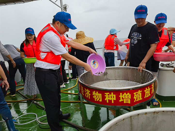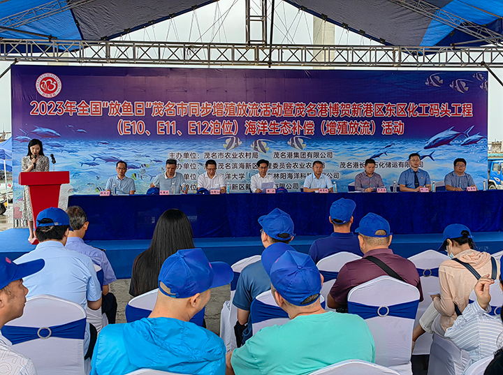 6月6日,茂名市農(nóng)業(yè)農(nóng)村局與茂名港集團聯(lián)合在茂名市放雞島人工魚礁區(qū)開展2023年全國 “放魚日” 茂名市同步增殖放流活動暨茂名港博賀新港區(qū)東區(qū)化工碼頭工程海洋生態(tài)補償(增殖放流)活動。廣東茂名濱海新區(qū)黨工委副書記黃永,茂名市農(nóng)業(yè)農(nóng)村局副局長鐘秀威,茂名市自然資源局三級調(diào)研員羅進鑫,茂名市人民檢察院第四檢察部主任仲江,茂名市生態(tài)環(huán)境局自然生態(tài)保護科科長朱國慶,茂名港集團黨委委員、副總裁楊超燦及有關(guān)單位約百余人參加了活動。
