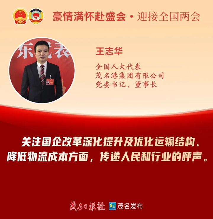 3月5日上午,十四屆全國人大二次會議在北京人民大會堂開幕。國務(wù)院總理李強作的政府工作報告,引發(fā)茂名全國人大代表熱議。大家認為,報告通篇貫穿習近平新時代中國特色社會主義思想,總結(jié)成績振奮人心、分析形勢深刻透徹,科學提出今年發(fā)展主要預(yù)期目標和政策取向,部署實施一系列重大舉措,是一份提振信心、催人奮進的好報告。王志華表示,政府工作報告以習近平新時代中國特色社會主義思想為指導(dǎo),總結(jié)了2023年在復(fù)雜的國際國內(nèi)形勢下取得的七個方面成績,對2024年工作進行了部署安排,令人鼓舞,催人奮進。報告強調(diào)要降低物流成本,旨在降低全社會物流成本,形成統(tǒng)一高效、競爭有序的物流市場,大力發(fā)展臨空經(jīng)濟、臨港經(jīng)濟。茂名的傳統(tǒng)支柱產(chǎn)業(yè)石化、農(nóng)業(yè)、建筑業(yè)和大力發(fā)展的綠色化工、新型儲能、新材料等行業(yè),都非常依賴大運力的港口物流交通。茂名市委、市政府高度重視港口建設(shè),自2012年開始,累計投入近百億元,打造的“海鐵公管空”立體交通網(wǎng)絡(luò)已基本成型。隨著港口吞吐量快速增長,希望加快完成茂名港博賀新港區(qū)、吉達港區(qū)建設(shè),盡快正式對外開放,有力支撐茂名對外貿(mào)易和制造業(yè)產(chǎn)業(yè)發(fā)展;建議自然資源、交通運輸、發(fā)展改革、生態(tài)環(huán)境等有關(guān)部門,全力支持博賀新港區(qū)申報填海造陸工程,推動港口與臨港產(chǎn)業(yè)聯(lián)動發(fā)展,不斷降低物流成本;建議針對發(fā)展新形勢、新情況,再一次啟動打通港口連接路的摸查,打通連接港口“最后一公里”,助力臨港產(chǎn)業(yè)高質(zhì)量發(fā)展。 3月6日 參加廣東省代表團小組會議